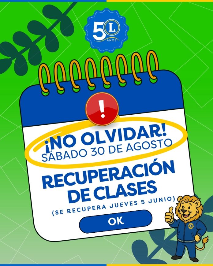 Recordamos que este 𝐒𝐀́𝐁𝐀𝐃𝐎 𝟑𝟎 𝐃𝐄 𝐀𝐆𝐎𝐒𝐓𝐎 tendremos recuperar de clases correspondiente al día jueves 5 de junio 🗓️ en horario normal.