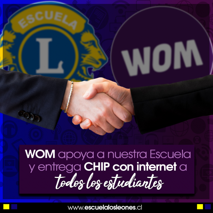 WOM S.A. entendiendo la situación que vivimos mundialmente por la Pandemia de COVID-19, la importancia que adquieren las telecomunicaciones como canal de difusión para las clases digitales (Teleeducación) y el contacto que se requiere entre Escuela y Apoderados acordó beneficio con nuestro Director Don José Luis Alegría Aedo y la entrega de UN CHIP para cada estudiante con 500 MB de Internet y Whatsapp LIBERADO (incluyendo llamadas, videollamadas y descarga de archivos).